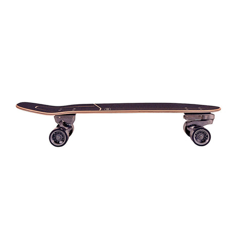 With its wider spooned nose and fat tail you get full power rail transfer during deep carves and sharp cutbacks, while the concave wheels hold your deepest lines without slipping out.