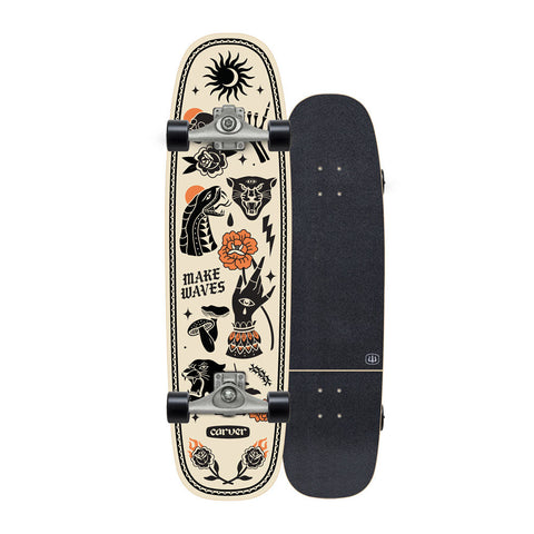 The narrower 8.5” template keeps it light, with a bit more room at the nose for wide stance carving. The Omni comes standard with black 58mm x 95a Carver park wheels designed with a rounded profile which helps lock into grinds, C5 hollow trucks and built-in bearings.