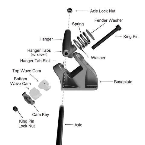 Hamboards produces trucks with four different pivot angles, 55°, 40°, 20° and 0°. After years of testing and customer feedback, we have identified three setups which cover the majority of skill levels and customer riding styles.